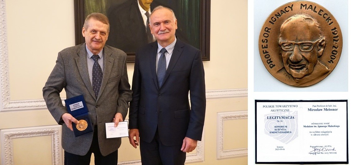 We are pleased to announce that Professor Mirosław Meissner has been awarded the Ignacy Malecki Medal for outstanding achievements in acoustics by the Polish Acoustical Society. The medal award ceremony took place on October 24, 2025 in Warsaw during the plenary session of the Committee on Acoustics, Polish Academy of Sciences (PAS).